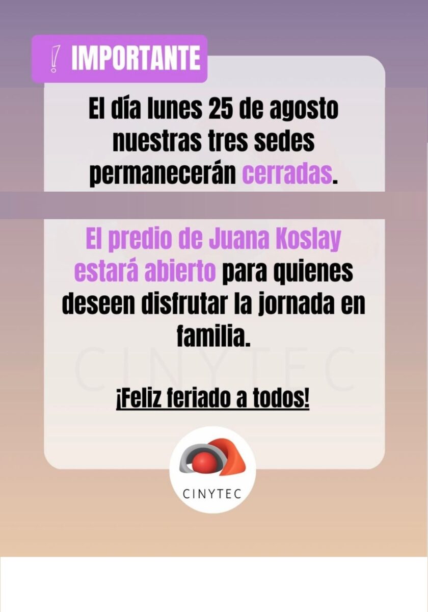 El día 25 de agosto nuestras tres sedes permaneceran cerradas debido al feriado provincial por el aniversario de la fundación de la provincia. El predio de […]